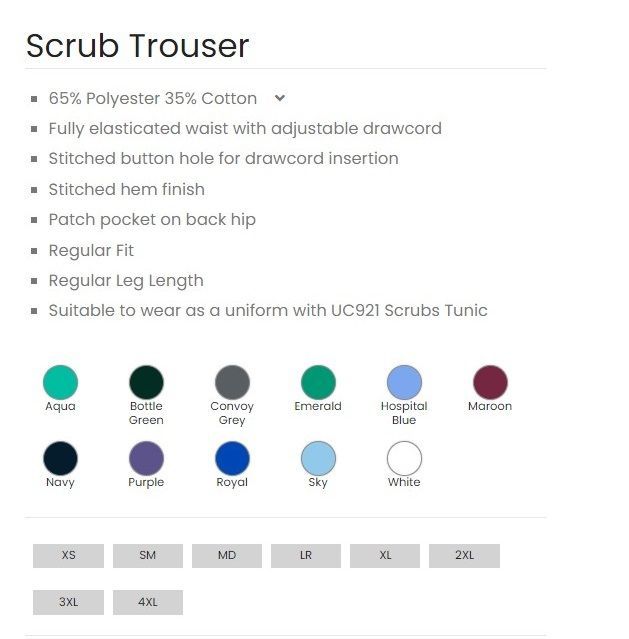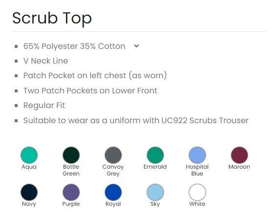 Lightweight, comfortable, quality unisex scrubs in a practical design for easy wear. With side vents for a better fit against the hip. Choice of colours available.- Two hip pockets, one chest pocket